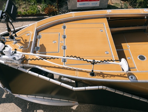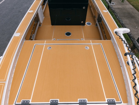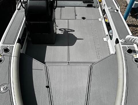 “Amazing service and attention to detail. Everything lined up perfectly and flows through the boat. Incredible final touch to a custom build. 4 years on and over 4000 hours (off Humminbird sounder hour meter) of foot traffic, gear stored and fish sliding across the deck still looks like new. Easy to clean and remove stains. 11/10”